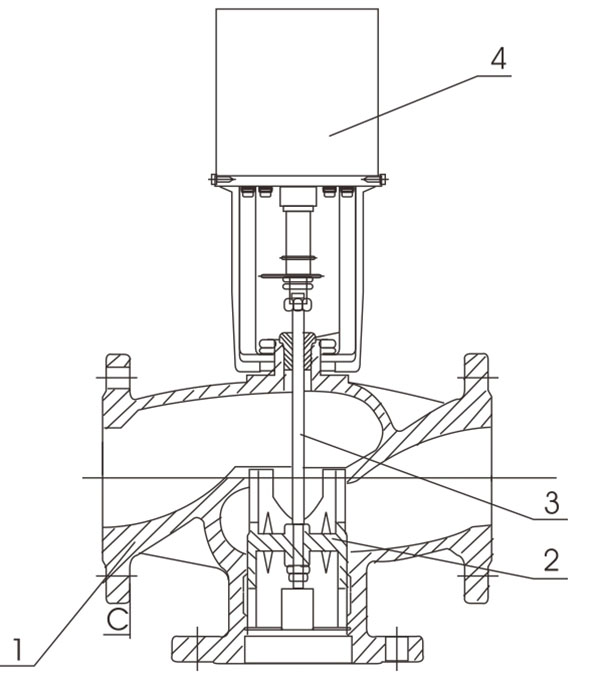 VB-7000系列法兰阀调节阀包括阀体、阀盖、阀瓣、阀杆、轴封、密封件。